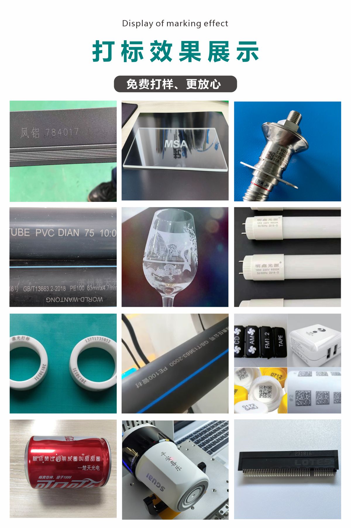 采用美國原裝進(jìn)口紫外激光器,一體化設(shè)計(jì),強(qiáng)制風(fēng)冷設(shè)計(jì),基本實(shí)現(xiàn)免維護(hù)。幾乎對(duì)所有材料可進(jìn)行激光標(biāo)記。